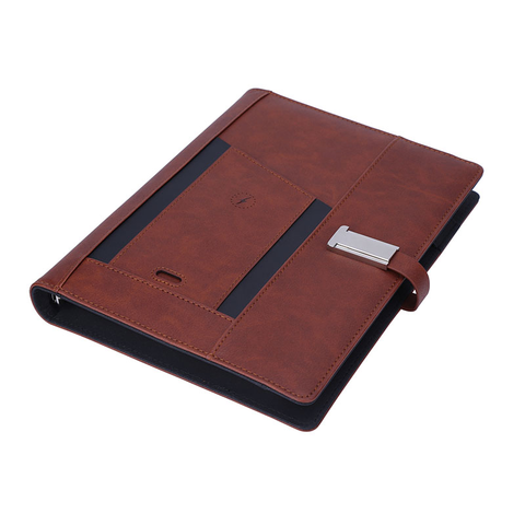 אישית OEM מחברות יומן מותאם אישית מודפס דפים חכם מחברת יומן מתכנן אלחוטי מטען מתנת פנקס A5 עור מפוצל